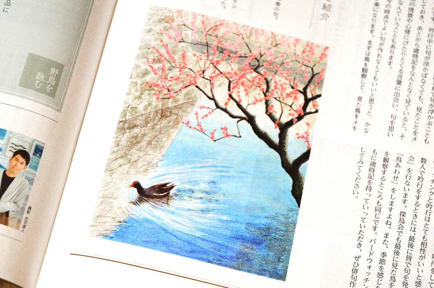会誌 『野鳥』(2023年7・8月号、公益財団法人日本野鳥の会) 「野鳥を詠む」挿絵(アクリル、2023年)